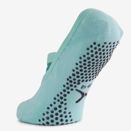 Lassen sich anziehen wie Ballerinas und verfügen über ein Gummiband an der Fußoberseite für besseren Halt. Die Silikon-Noppen unten verhindern ein Wegrutschen bei sanfter Gymnastik und Pilates.