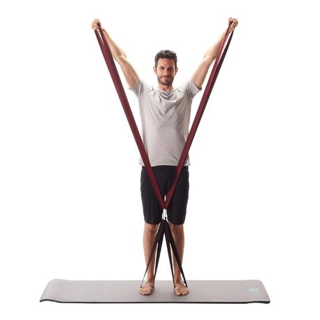 Mithilfe der 4 Haltegriffe des Bands profitierst du von einer umfassenden Kräftigung deines Körpers mittels des synchronen Widerstandstrainings von Armen und Beinen.