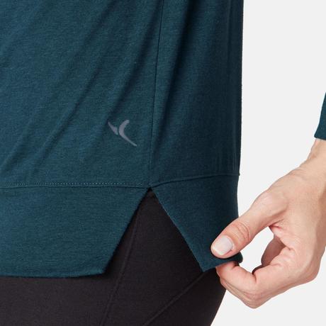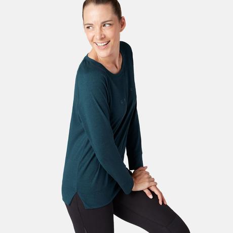 Langarmshirt 500 Pilates sanfte Gymnastik Damen grünblau mit Print