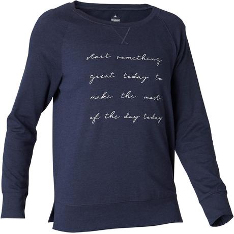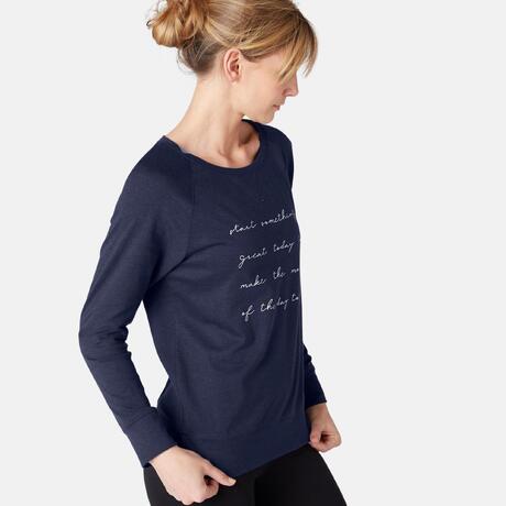 Langarmshirt 500 Pilates sanfte Gymnastik Damen marineblau mit Print