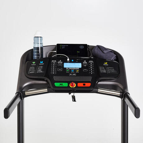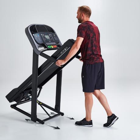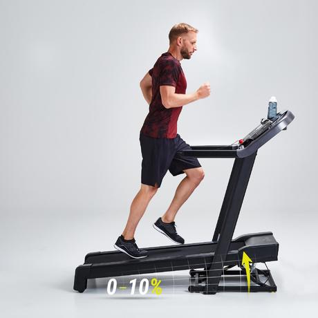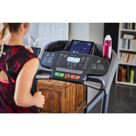 Geräuscharmes Laufband für eine Laufgeschwindigkeit bis 16 km/h. Das Modell T540 ist kompatibel mit der Domyos-App E Connected, um das Training zu verfolgen.