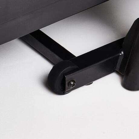 Das Laufband T540 ist zusammenklappbar und kann somit platzsparend verstaut werden. Die benötigte Fläche sollte 114 x 79 cm groß sein. Um die Lebensdauer des Laufbandes zu verlängern, sollte es trocken und staubgeschützt gelagert werden. Mit zwei Rollen für leichteren Transport.