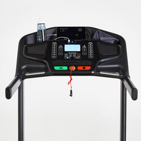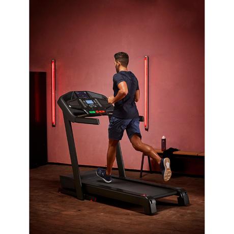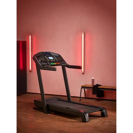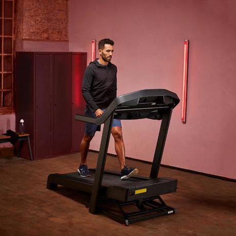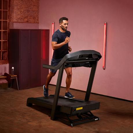 Das Laufband T900 ist mit Herzfrequenzsensoren und einem noch verlässlicheren Brustgurt ausgestattet. Mit diesem Zubehör kannst du beim Training deinen Puls überwachen.