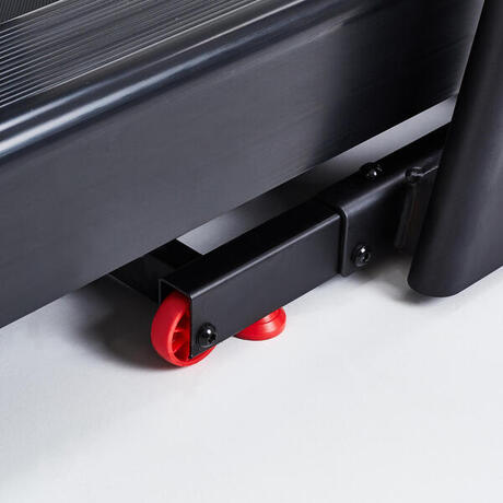 Um die Lebensdauer des Laufbandes zu verlängern, sollte es trocken und staubgeschützt gelagert werden. Mit zwei Rollen für leichteren Transport.