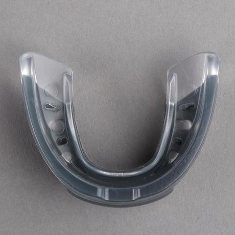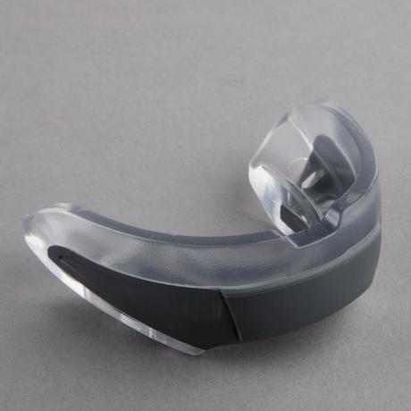 Der Zahnschutz 500 besteht aus zwei Materialien. Die erste Schicht lässt sich präzise formen und anpassen, die zweite Schicht dämpft Stöße ab und verbessert die Atmung beim Sport.