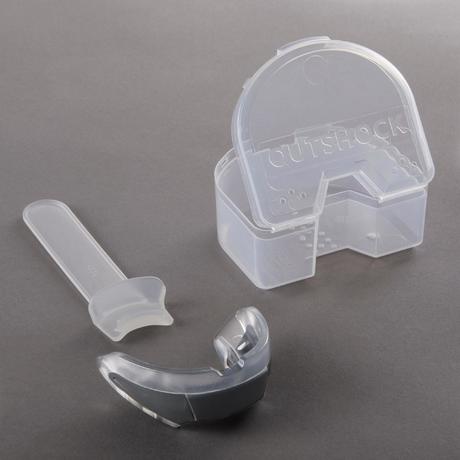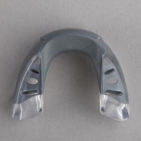 Der Zahnschutz 500 besteht aus zwei Materialien. Die erste Schicht lässt sich präzise formen und anpassen, die zweite Schicht dämpft Stöße ab und verbessert die Atmung beim Sport.