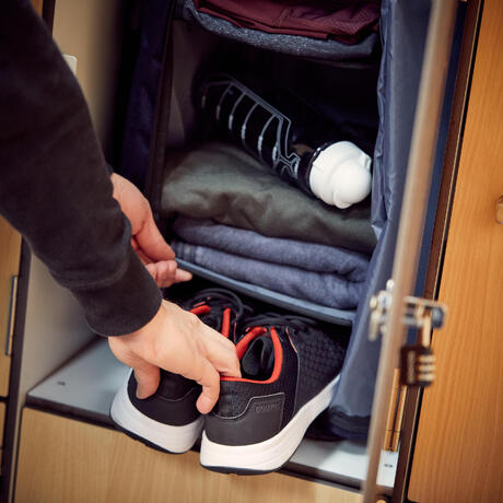 Die 40 l-Fitnesstasche wurde speziell für Sportler entwickelt, die vor oder nach der Arbeit oder in der Mittagspause zum Training gehen. Ideal zum Transport von Kleidung und Equipment für das Fitnesstraining. Mit zahlreichen Fächern zum einfachen, benutzerfreundlichen Verstauen. Einfacher Transport durch die 4 verschiedenen Tragearten. Durch ihre spezielle Form passt die Tasche perfekt in jedes Schließfach.